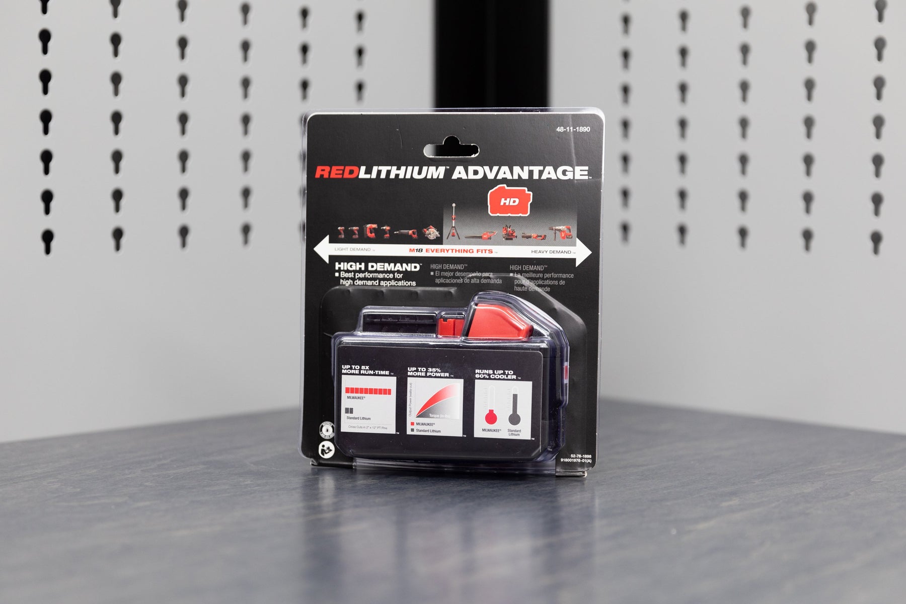 HD battery packs, or “High Demand” are for the longest use times, and run less hot. This is for stuff like table saws, miter saws, etc.