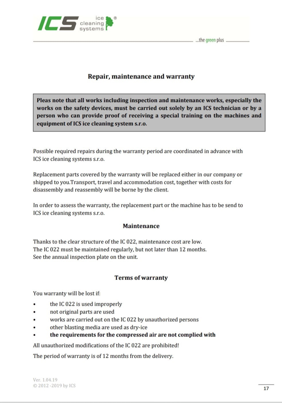 The ICS IC 022 Evo has full support in North America. Parts and servicing for the ICS IC 002 Evo are readily available!